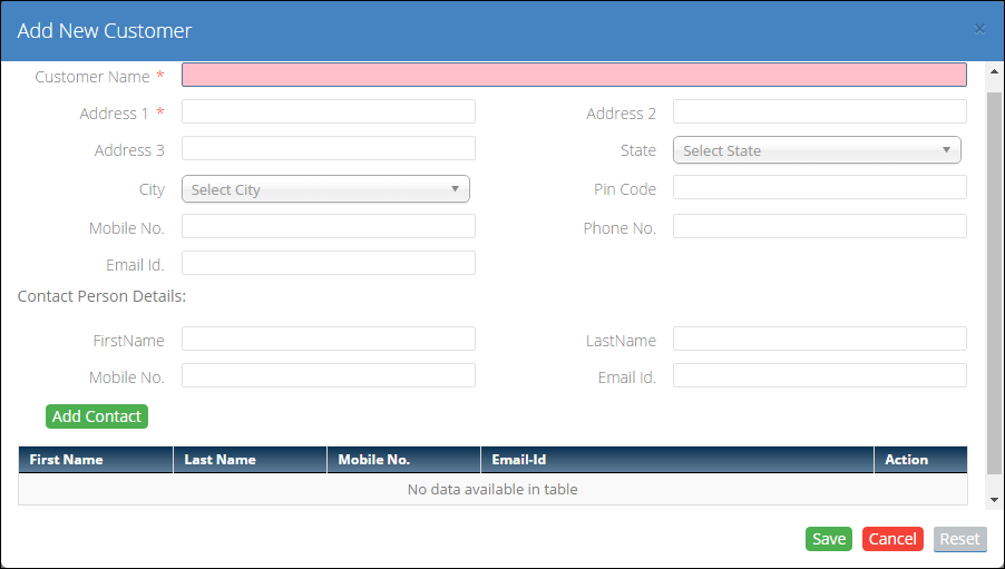 - Enter Customer Name.