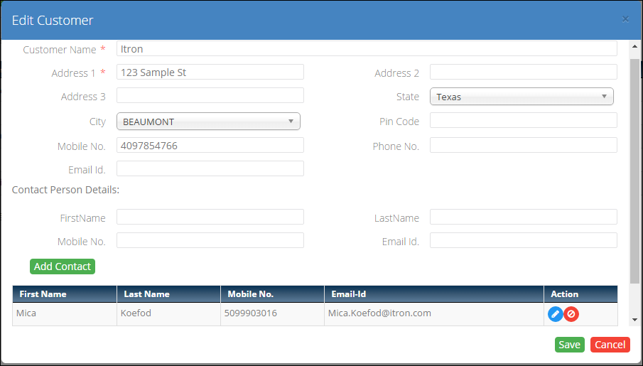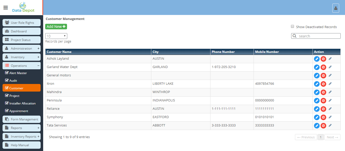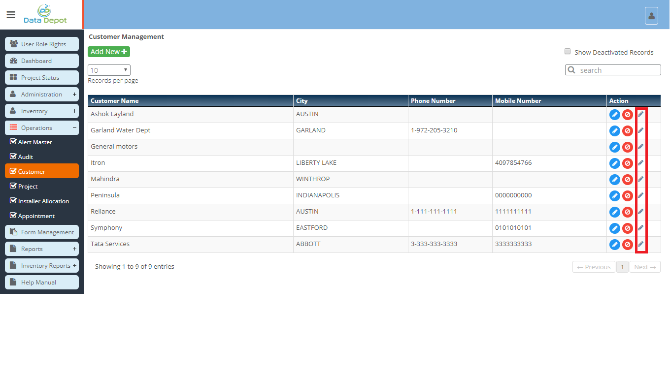 - Customers and their details can be edited and deleted through this.