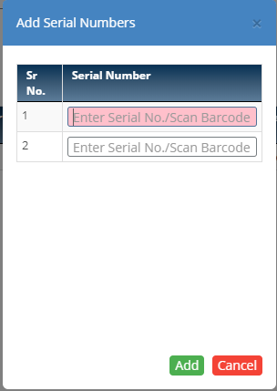 - Pop up will be shown to add the serial numbers