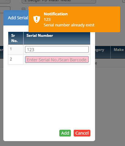 - If duplicate serial number is entered alert message will be shown