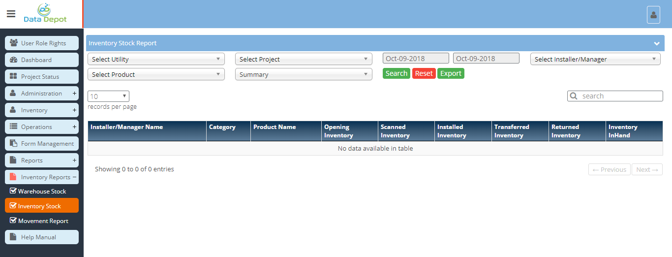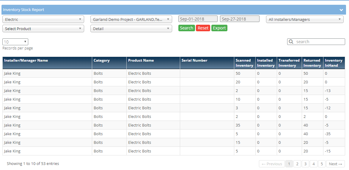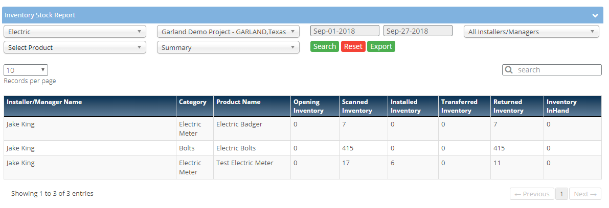 - This report will display the running inventory of installer and manager.