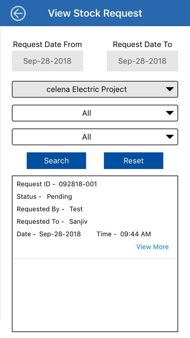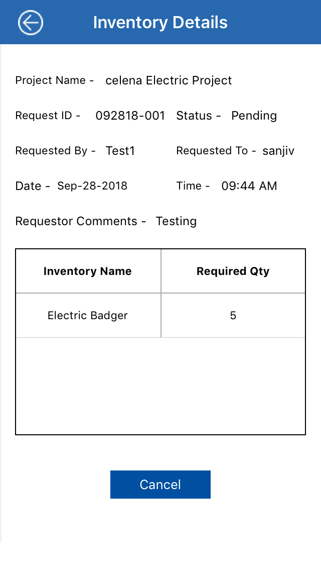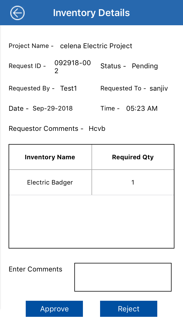 - This screen will be used by installer to view the requested inventory details and also by manager to approve/reject the request.