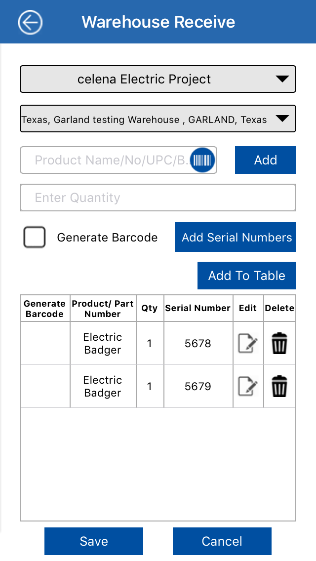 - This screen will be used by warehouse manager to add inventory into the warehouse