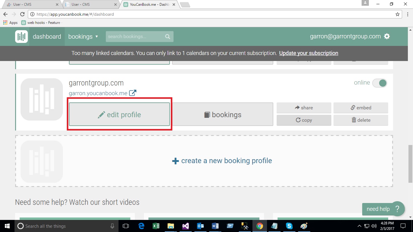 - After login to You Can Book Me site click on the “edit profile” button on the particular project profile.