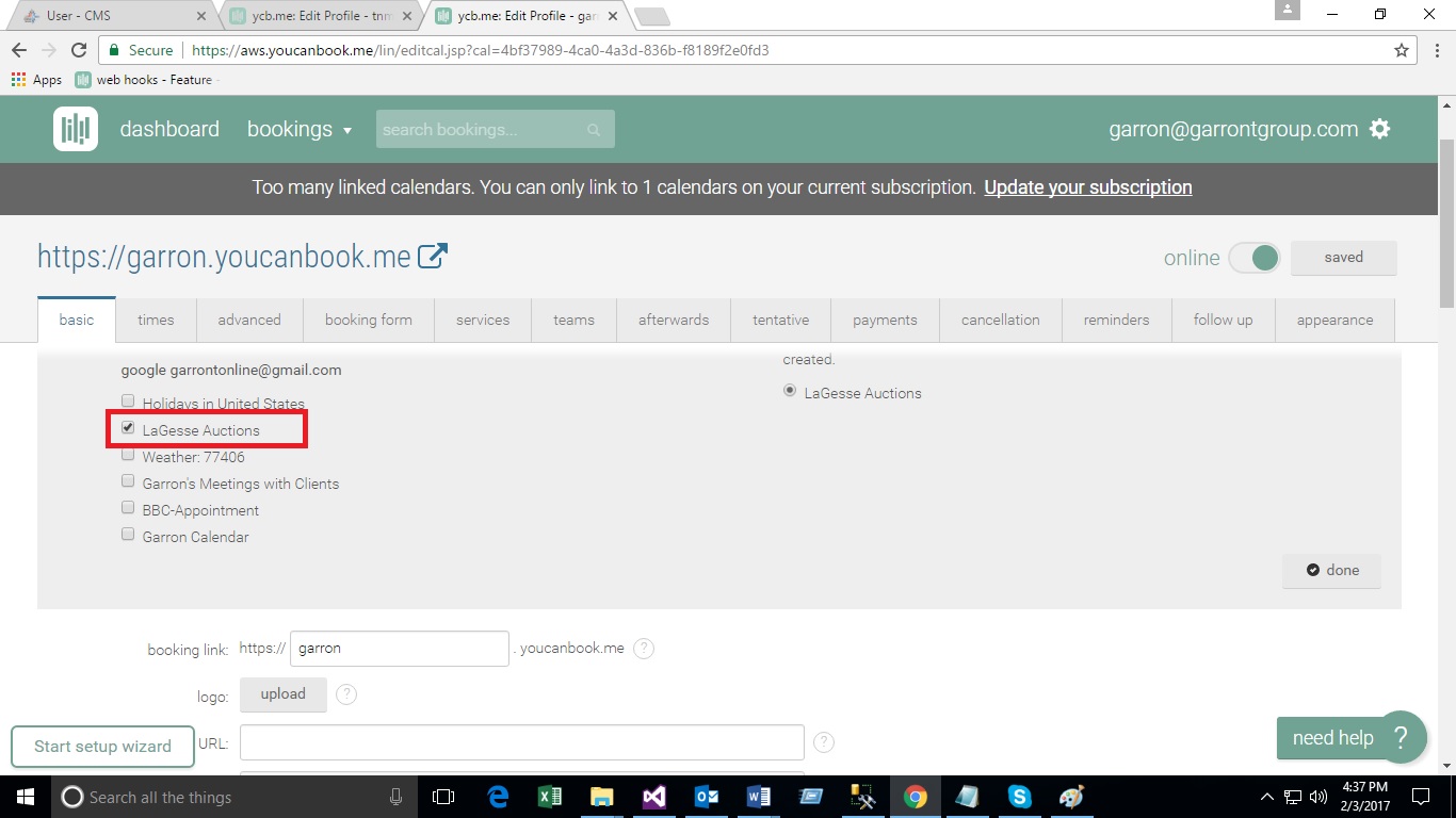 - Select the check box “LaGesse Auctions” Calendar from the list of calendars