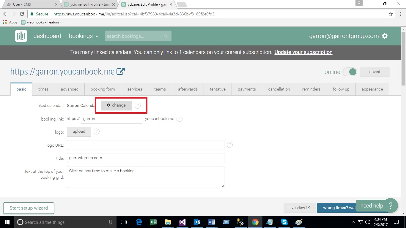 - Click on ‘change’ button located in front of the label linked Calendar