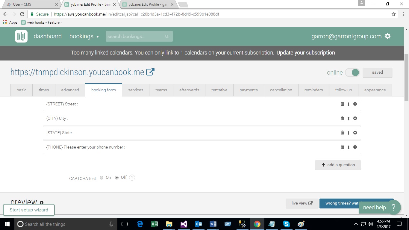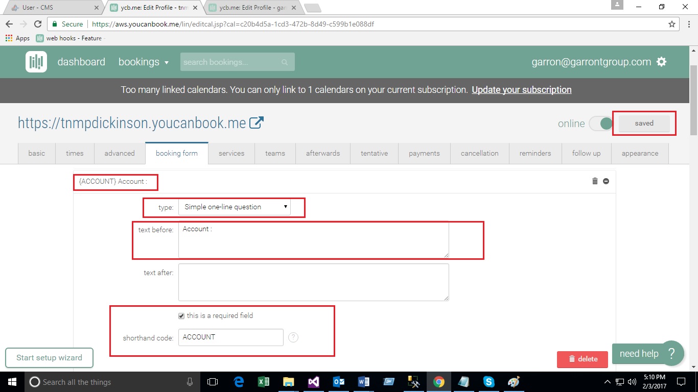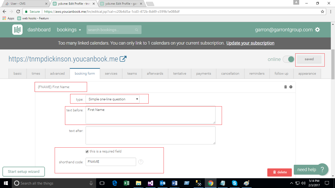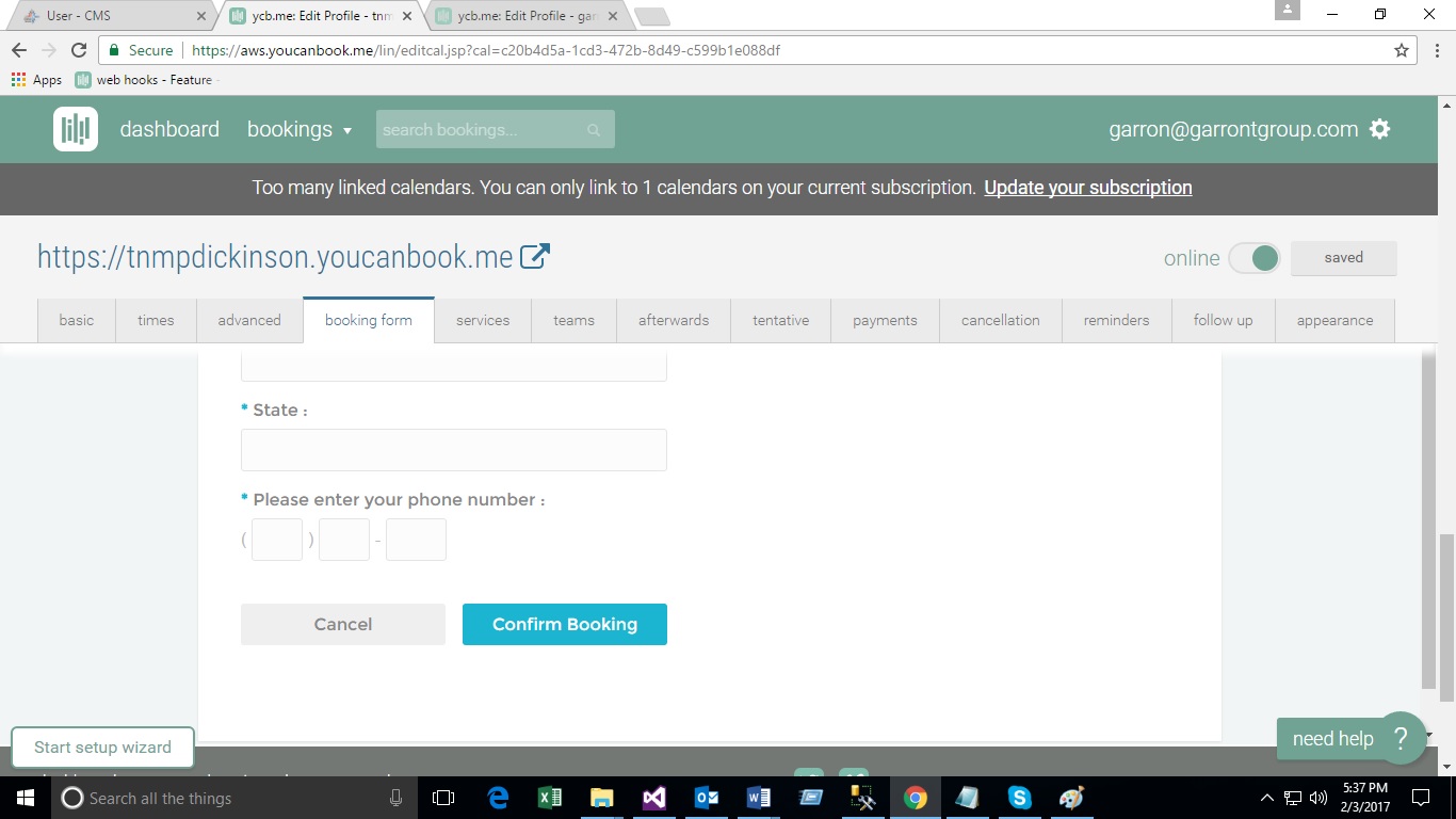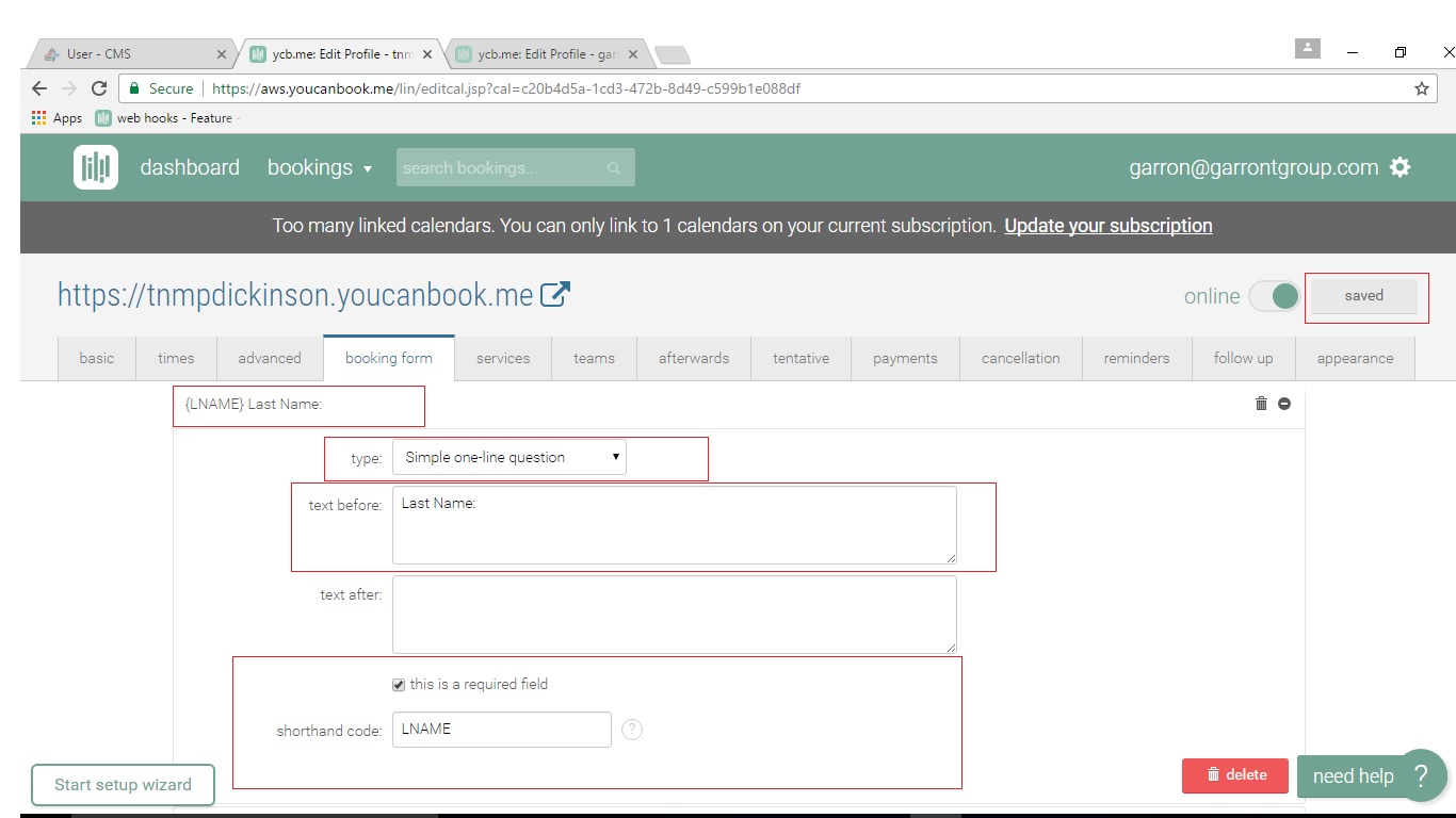 - Create Booking Form on You Can Book Me site