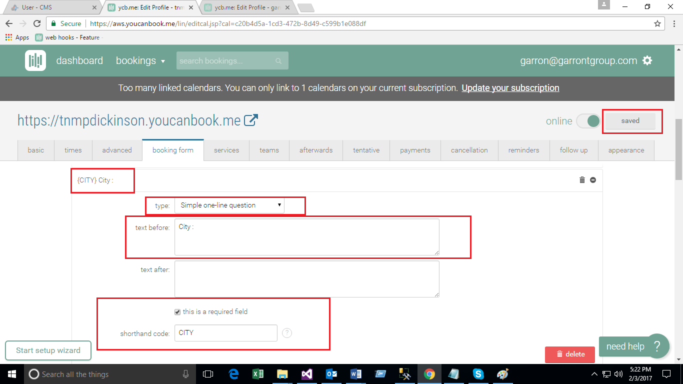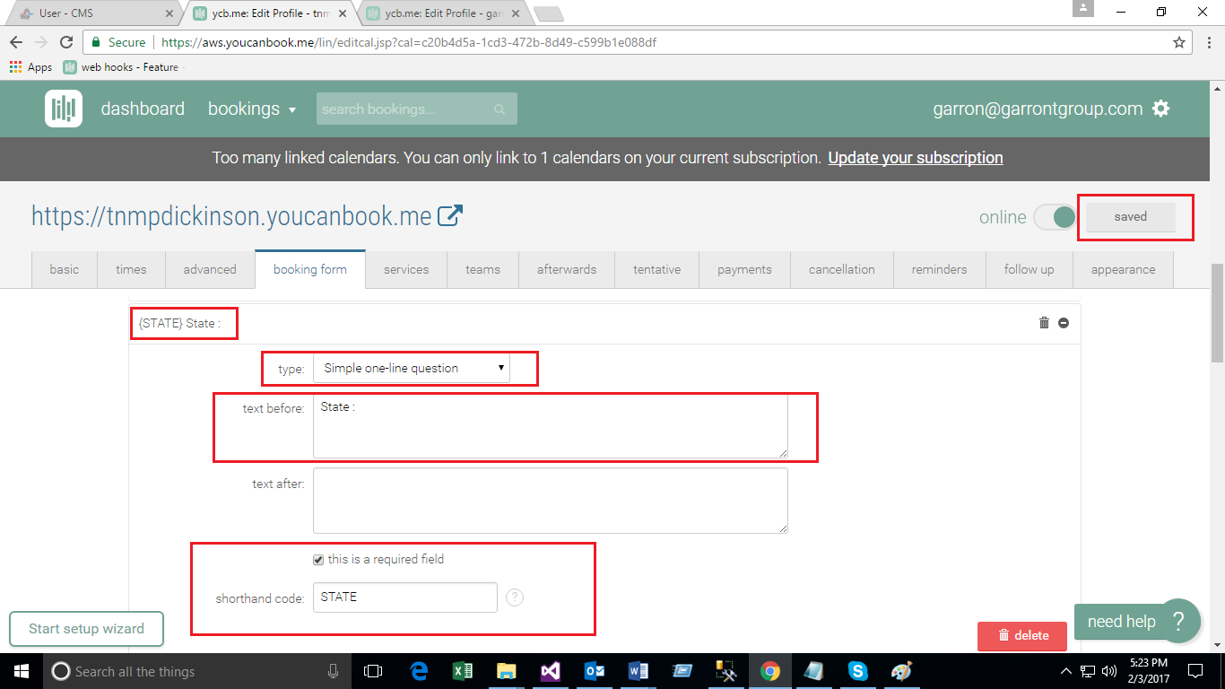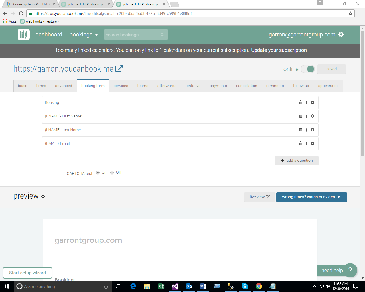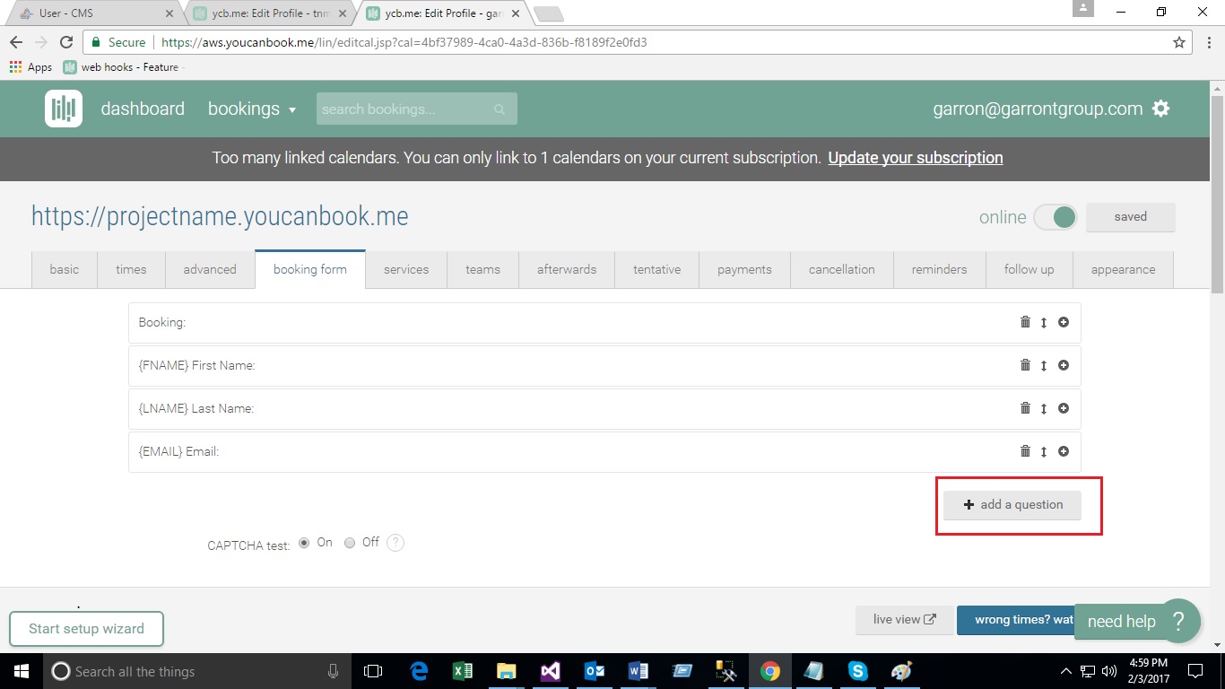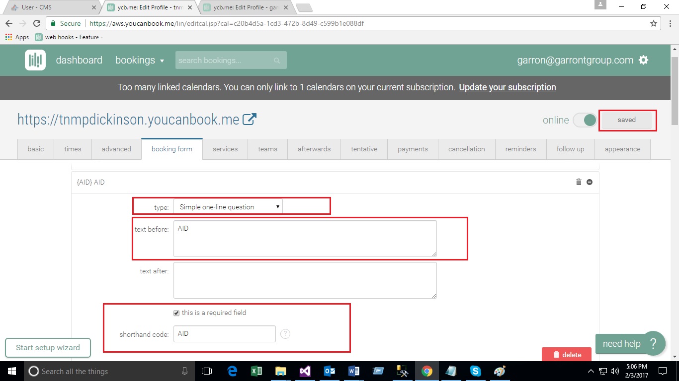 - Create Booking Form on You Can Book Me site