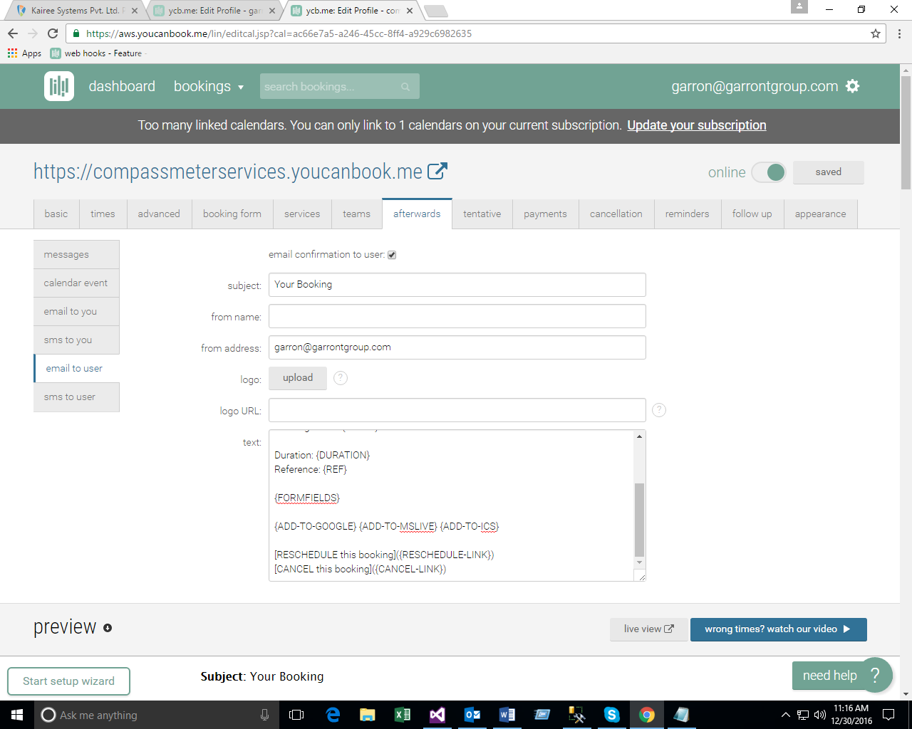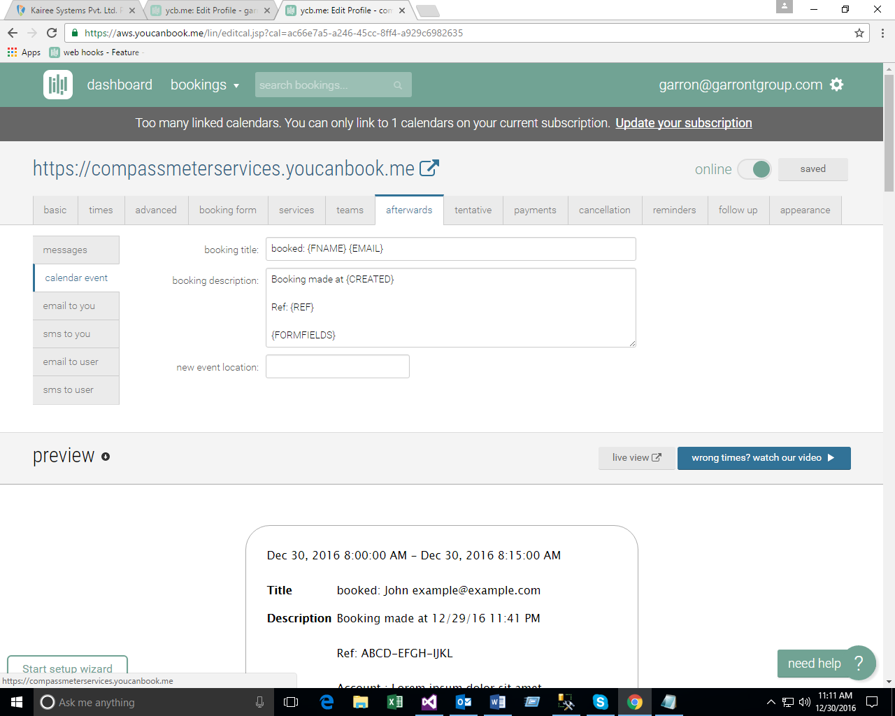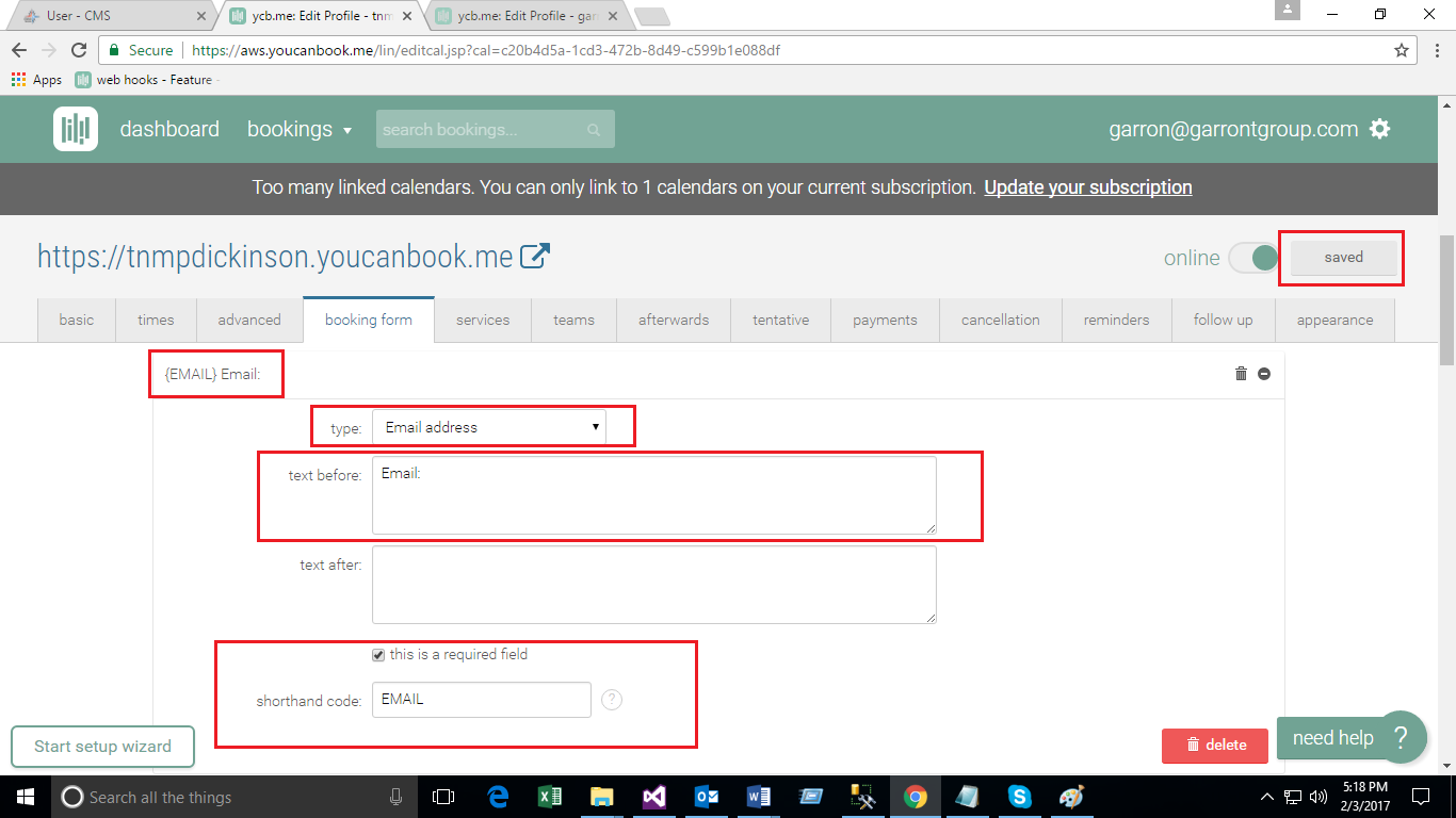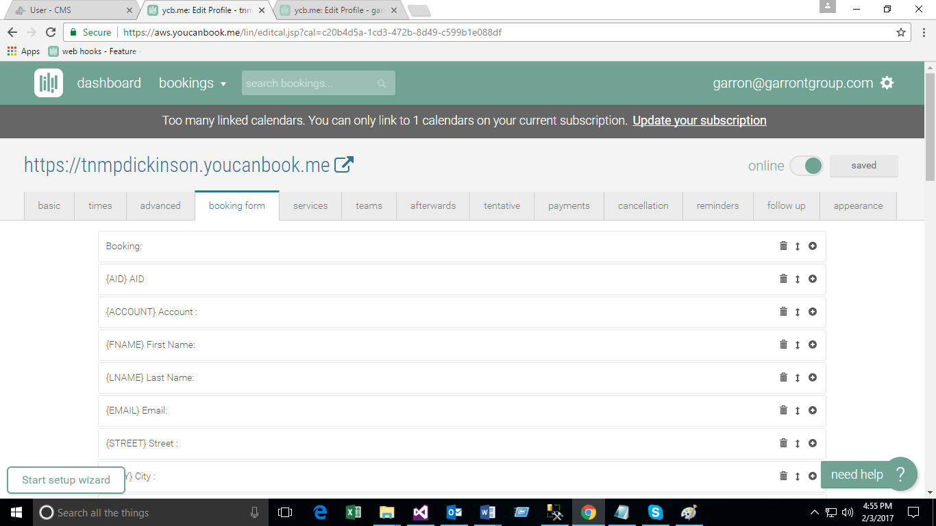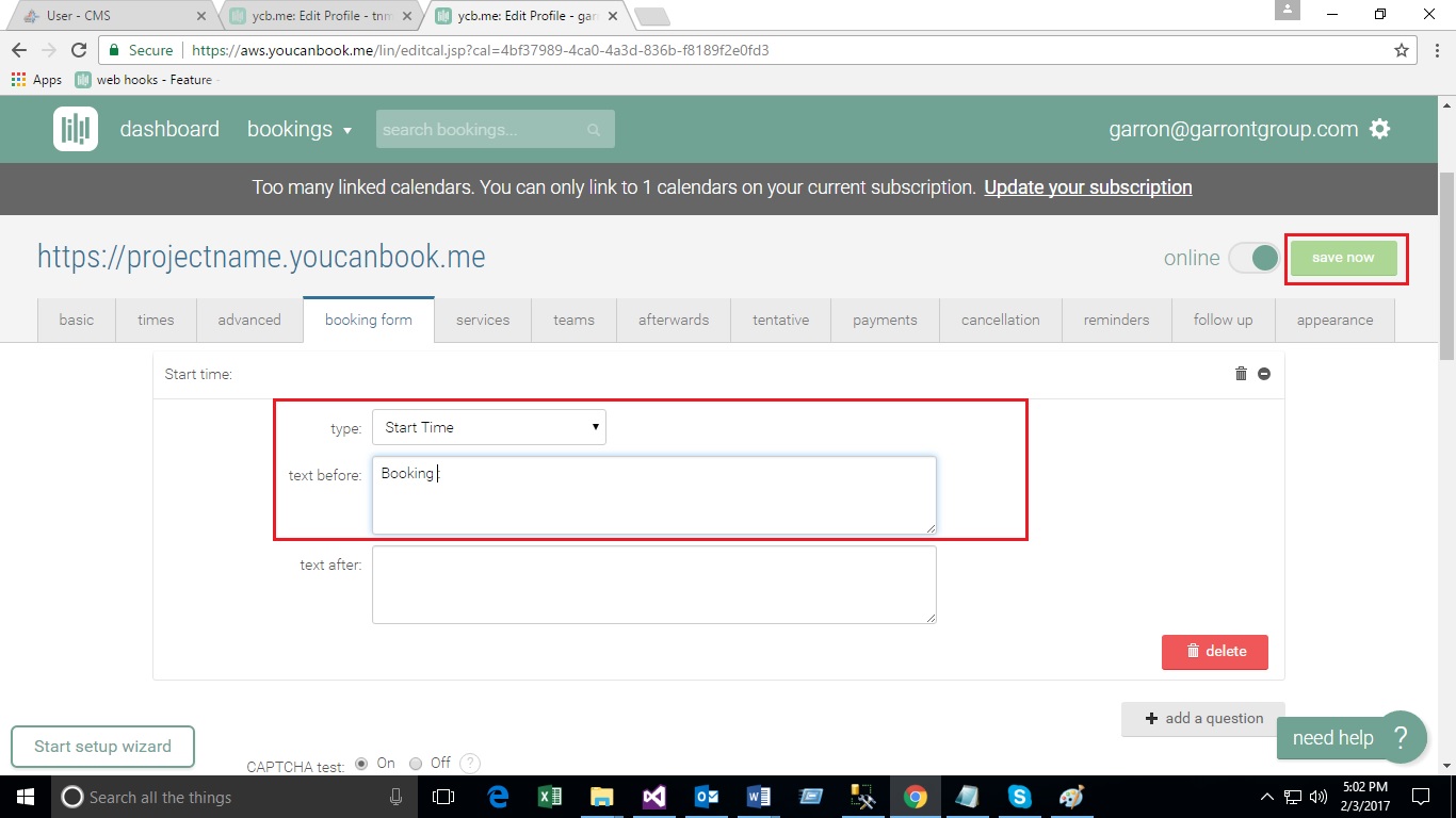 - Create Booking Form on You Can Book Me site